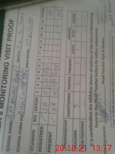 | Attendance Register | Head Teacher | MEA with School | Visit Proof |