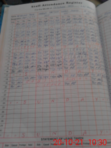 | CNIC | Full Name | Designation | R/C | Absence During Last Calender Month |