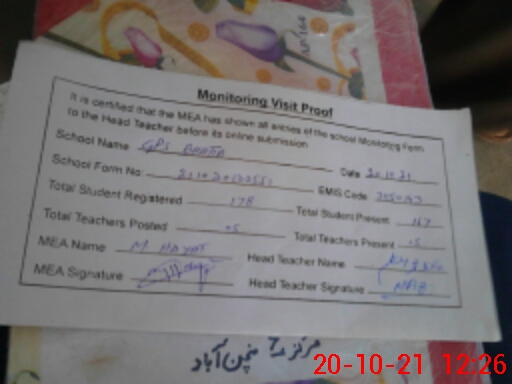 | Certified that this School was Inspected by the Undersigned MEA/DMO Today and the Information Stated Above is as Per Record. | |||||