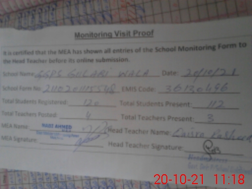 | EMIS Code: 36130496 | Name of School: GGPS GULABI WALA BASTI NOOR PUR | |||