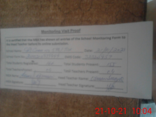 | EMIS Code: 32320957 | Name of School: GPS CHAK NO. 598 TDA | |||