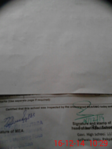 | Certified that this School was Inspected by the Undersigned MEA/DMO Today and the Information Stated Above is as Per Record. | |||||