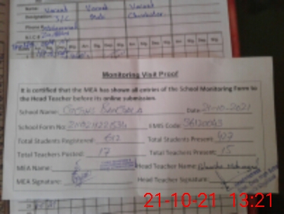 | Attendance Register | Head Teacher | MEA with School | Visit Proof |
