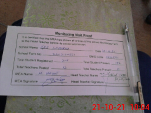 | Certified that this School was Inspected by the Undersigned MEA/DMO Today and the Information Stated Above is as Per Record. | |||||