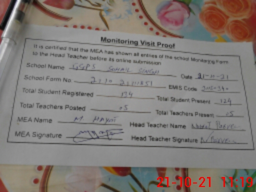 | EMIS Code: 31150340 | Name of School: GGPS SOHAIL SINGH | |||