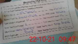 | Monitoring Date: 22-10-2021 | Start Time: 22-10-2021 09:33 AM | End Time: 22-10-2021 10:21 AM | Name of MEA: Ab**** Ra**** Am**** BN**** 28 | |
