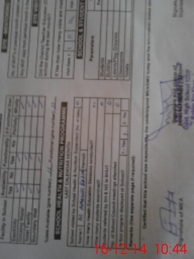 | Certified that this School was Inspected by the Undersigned MEA/DMO Today and the Information Stated Above is as Per Record. | |||||
