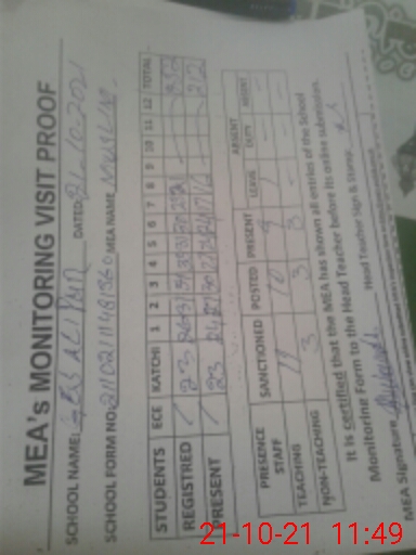 | Certified that this School was Inspected by the Undersigned MEA/DMO Today and the Information Stated Above is as Per Record. | |||||