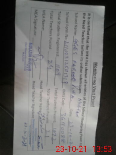 | Certified that this School was Inspected by the Undersigned MEA/DMO Today and the Information Stated Above is as Per Record. | |||||