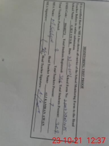 | Certified that this School was Inspected by the Undersigned MEA/DMO Today and the Information Stated Above is as Per Record. | |||||