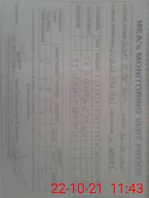 | Certified that this School was Inspected by the Undersigned MEA/DMO Today and the Information Stated Above is as Per Record. | |||||