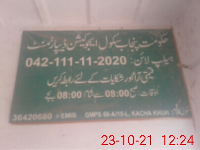 | EMIS Code: 36420680 | Name of School: GMPS 66-A/15-L, KACHA KHUH | |||