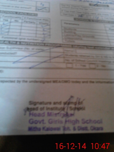 | Certified that this School was Inspected by the Undersigned MEA/DMO Today and the Information Stated Above is as Per Record. | |||||