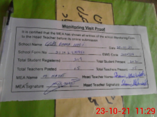 | Certified that this School was Inspected by the Undersigned MEA/DMO Today and the Information Stated Above is as Per Record. | |||||