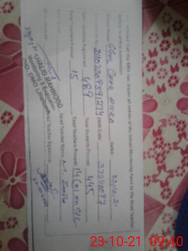 | Name: Za**** Ra**** Designation: (School Headmaster's/Headmistress's) Headmistress Phone/Cell Number: 03**** |