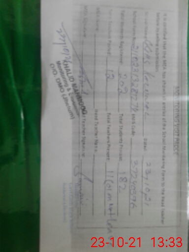 | Certified that this School was Inspected by the Undersigned MEA/DMO Today and the Information Stated Above is as Per Record. | |||||