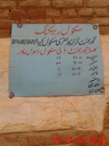 | District: RAJANPUR | Tehsil: JAMPUR | Markaz: RASOOL PUR - FEMALE | Level: Primary | |