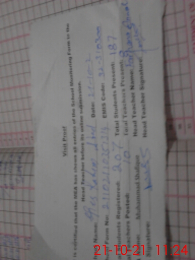 | Certified that this School was Inspected by the Undersigned MEA/DMO Today and the Information Stated Above is as Per Record. | |||||