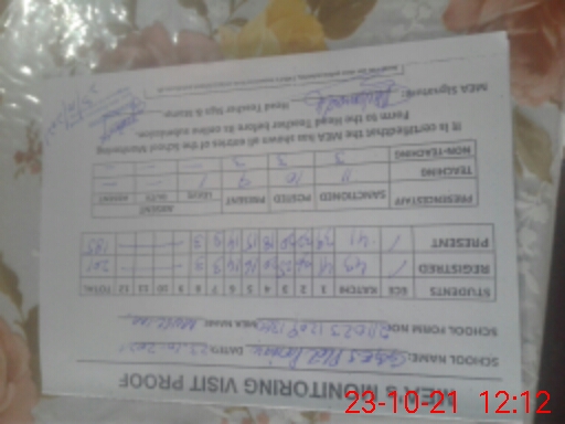 | Attendance Register | Head Teacher | MEA with School | Visit Proof |