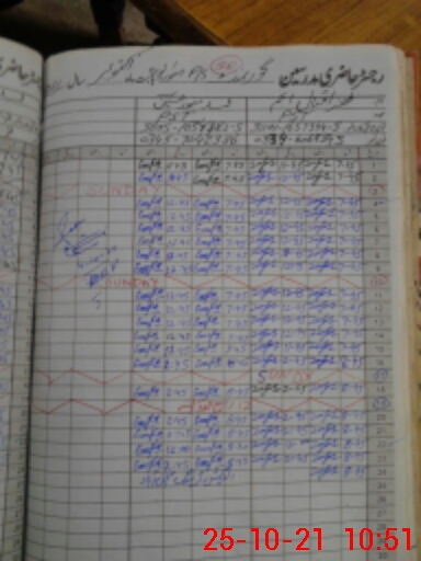 | CNIC | Full Name | Designation | R/C | Absence During Last Calender Month |