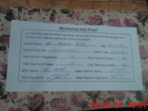 | EMIS Code: 31150208 | Name of School: GPS ASWAR PURA | |||