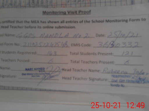 | EMIS Code: 36130332 | Name of School: GGPS NANDLA NO.2 NEAR SYED WALI KHOI | |||