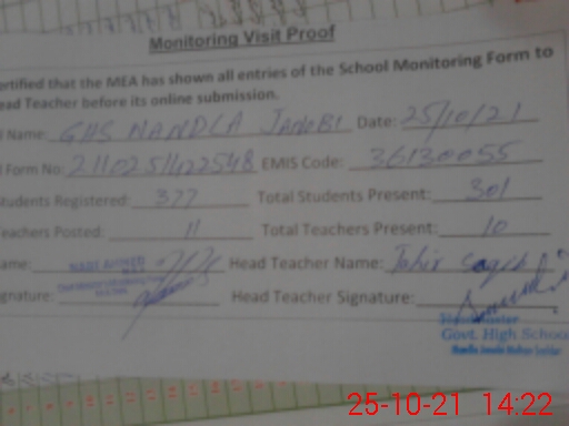 | EMIS Code: 36130055 | Name of School: GHS NANDLA JANOBI | |||