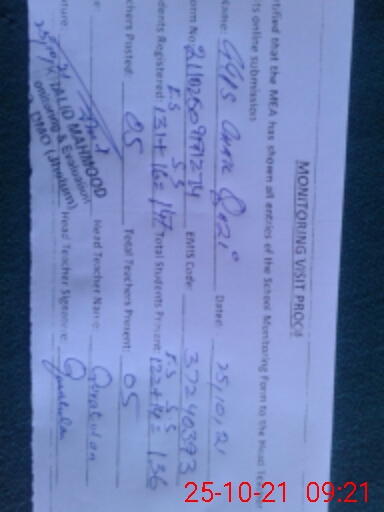 | Certified that this School was Inspected by the Undersigned MEA/DMO Today and the Information Stated Above is as Per Record. | |||||