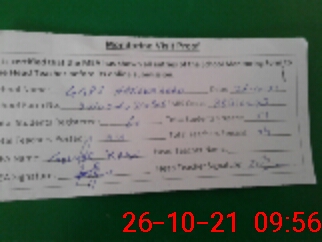| Monitoring Date: 26-10-2021 | Start Time: 26-10-2021 09:10 AM | End Time: 26-10-2021 09:57 AM | Name of MEA: Gu**** Hu**** Kh**** | |