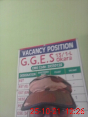 | District: OKARA | Tehsil: RENALA KHURD | Markaz: KISAN-FEMALE | Level: Middle | |