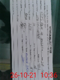 | Monitoring Date: 26-10-2021 | Start Time: 26-10-2021 09:00 AM | End Time: 26-10-2021 10:36 AM | Name of MEA: Ra**** Hu**** Gi**** | |