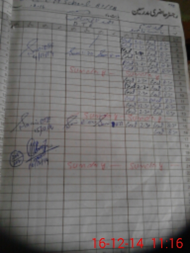 | School Visited by School Health & Nutrition Supervisor (No. of Visits) | 1 | Name1: | M USMAN | Name2: | NIL |