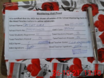 | Certified that this School was Inspected by the Undersigned MEA/DMO Today and the Information Stated Above is as Per Record. | |||||