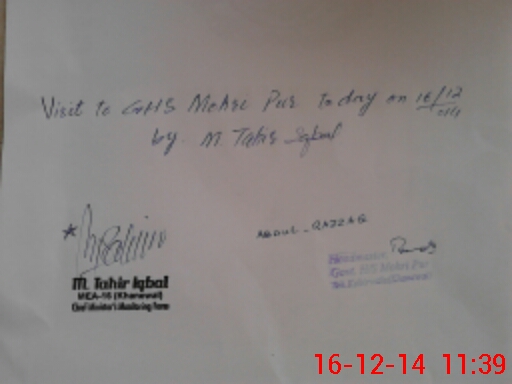 | Certified that this School was Inspected by the Undersigned MEA/DMO Today and the Information Stated Above is as Per Record. | |||||