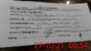 | Monitoring Date: 27-10-2021 | Start Time: 27-10-2021 08:56 AM | End Time: 27-10-2021 09:54 AM | Name of MEA: MU**** AH**** | |