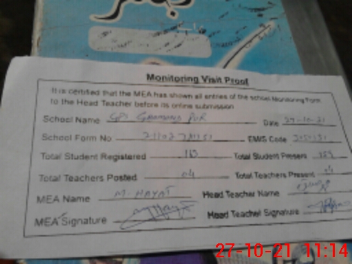 | Certified that this School was Inspected by the Undersigned MEA/DMO Today and the Information Stated Above is as Per Record. | |||||