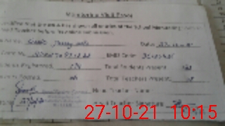 | Monitoring Date: 27-10-2021 | Start Time: 27-10-2021 09:31 AM | End Time: 27-10-2021 10:16 AM | Name of MEA: AH**** NA**** SA**** | |