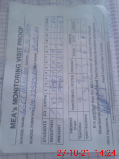 | Attendance Register | Head Teacher | MEA with School | Visit Proof |