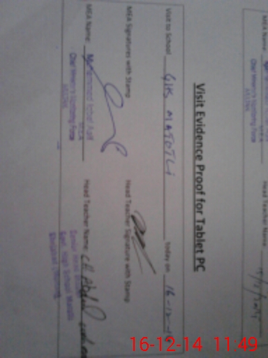 | Attendance Register | Head Teacher | MEA with School | Visit Proof |