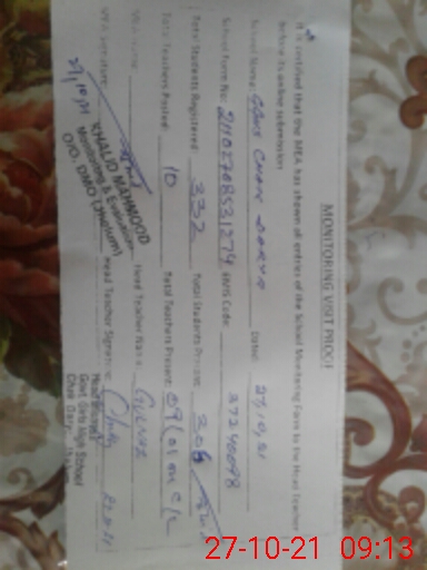 | EMIS Code: 37240098 | Name of School: GGHS CHAK DARYA | |||