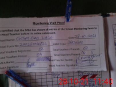 | Attendance Register | Head Teacher | MEA with School | Visit Proof |