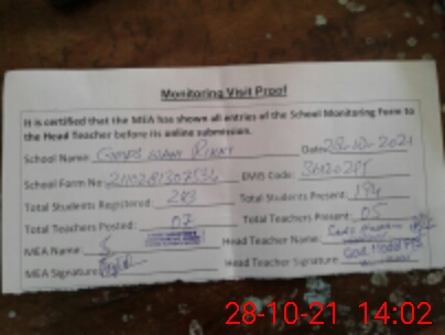 | Attendance Register | Head Teacher | MEA with School | Visit Proof |