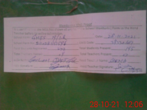 | Certified that this School was Inspected by the Undersigned MEA/DMO Today and the Information Stated Above is as Per Record. | |||||
