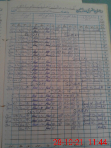 | CNIC | Full Name | Designation | R/C | Absence During Last Calender Month |