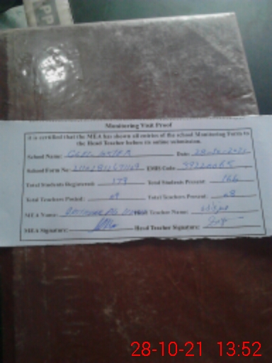 | Attendance Register | Head Teacher | MEA with School | Visit Proof |