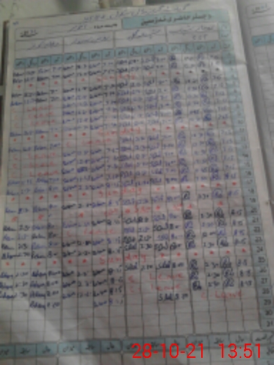 | CNIC | Full Name | Designation | R/C | Absence During Last Calender Month |