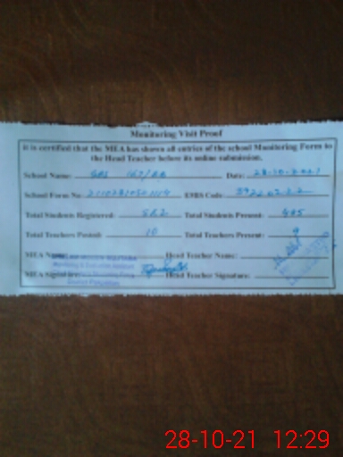 | Attendance Register | Head Teacher | MEA with School | Visit Proof |