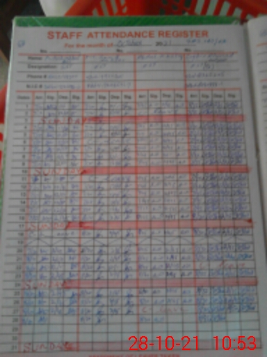 | CNIC | Full Name | Designation | R/C | Absence During Last Calender Month |