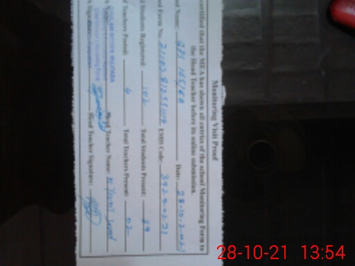 | Attendance Register | Head Teacher | MEA with School | Visit Proof |