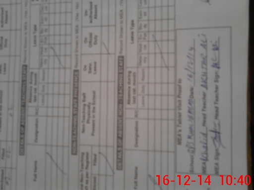 | Attendance Register | Head Teacher | MEA with School | Visit Proof |